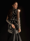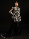 Black Fully Crystal Embellished Net Tunic with Ruffled Trouser and Scalloped Organza Dupatta