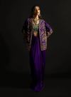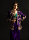 Purple Zardozi Embellished Jacket with Emerald Bustier and Purple Charmeuse Skirt