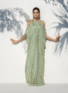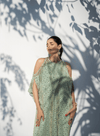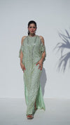 Cold Shoulder Crystal Embellished Mint Green Kaftan