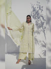 Grace meets sophistication in this stunning yellow and white embroidered long tunic with hand embellished buttons, paired with an Izaar and a delicately embroidered chiffon dupatta. The tunic features intricate embroidery that weaves elegance into every thread, adding a touch of refinement and charm. Complimenting the tunic is a well fitted Izaar, designed to balance style with ease of movement. The finishing touch is a soft chiffon dupatta, beautifully adorned with an embroidered border. Ideal for festive celebrations, this yellow and white embroidered ensemble exudes effortless elegance and charm.
