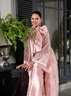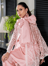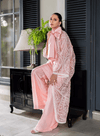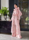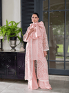 Pink Organza Pearl Embellished Coat with Slip and Trousers