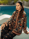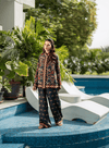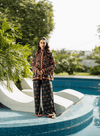 Sia printed Co-ord set. A statement ensemble featuring top and trouser carrying contrasting prints, creating a bold yet balanced look that’s modern, chic, and effortlessly stylish.